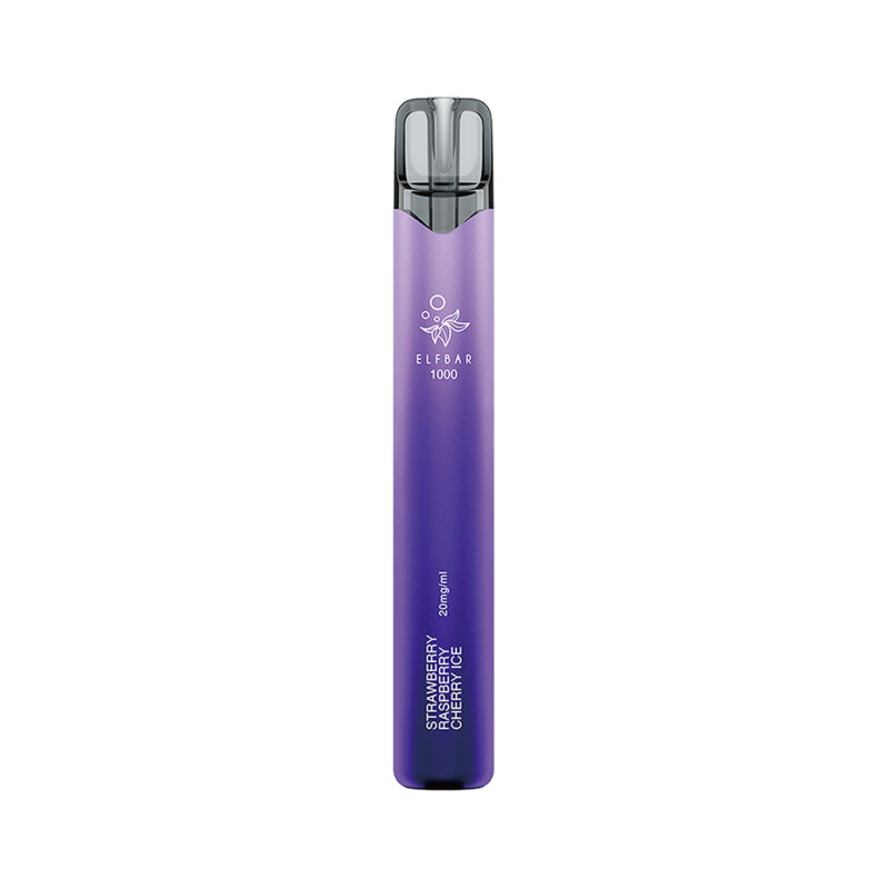 Elf Bar 1000 – Strawberry Raspberry Cherry Ice. Kompakte Vape mit intensiver Geschmacksvielfalt. Die ELFBAR 1000 ist eine benutzerfreundliche Einweg-Vape mit bis zu 1000 Zügen, hochwertigem 2-ml-Liquid (20 mg/ml Nikotin) und moderner Quad-Mesh-Coil-Technologie für konstant vollen Geschmack. Kompakt, leistungsstark und ideal für unterwegs – mit sichtbarem Tank, 550 mAh Akku und authentischem Aroma in 6 beliebten Sorten. Kein Nachfüllen. Keine Wartung. Einfach losdampfen.