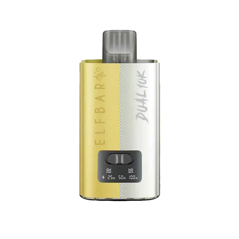 Elf Bar Dual 10K Starter Kit – Summer Edition ist ein Hybrid System mit zwei Geschmacksrichtungen in einem Gerät. Du setzt vor dem ersten Gebrauch die beiden vorgefüllten Behälter ein und wechselst danach jederzeit per mechanischem Schieberegler zwischen den Aromen – ganz ohne Pod-Wechsel. So bekommst du ein unkompliziertes, alltagstaugliches Dampferlebnis mit dem typischen Elf Bar Feeling, das jederzeit startklar ist. Das kompakte Gerät (97×47,5×24 mm) bietet je nach Zugverhalten etwa 9000 bis 10000 Züge, nutzt 20mg/ml Nikotinsalz und wird von einem 850 mAh Akku betrieben, den du bequem per USB-C auflädst. Insgesamt stehen dir 2×1ml Pods plus 2×5ml Nachfüllbehälter zur Verfügung.
