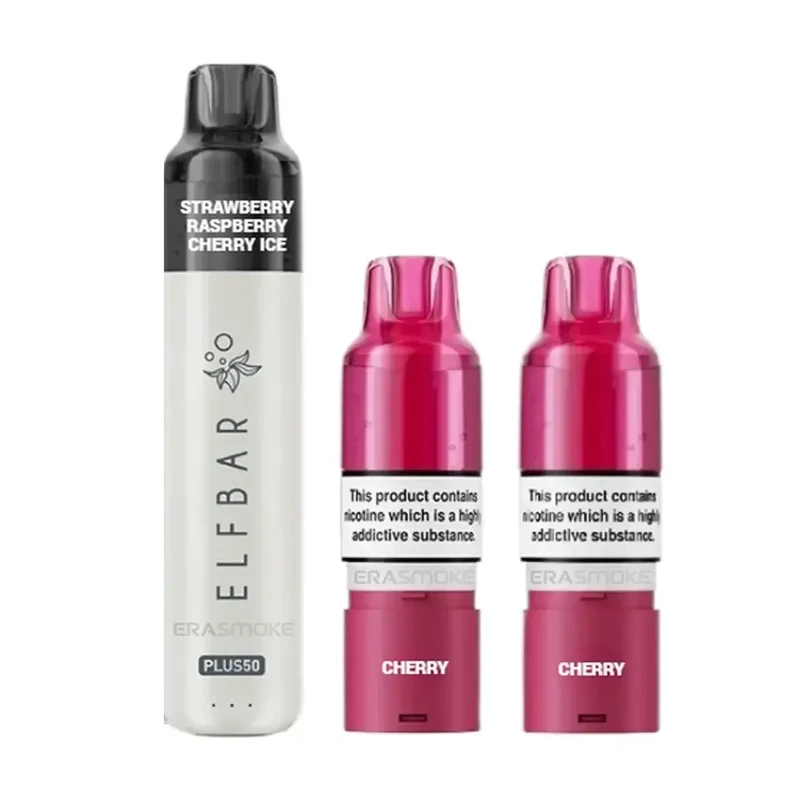 Elf Bar Plus 50 Starter Kit – Cherry Edition ist ein wiederbefüllbares Pod-System mit Inhale-Aktivierung. Also ganz ohne Knöpfe, und einem integrierten 800mAh-Akku mit USB-C Anschluss. Im Set sind 3 vorbefüllte Pods mit je 2ml enthalten, dazu kommen 3 Nachfüllpacks mit je 8ml. Das System ist auf lange Nutzung ausgelegt und liefert bis zu 50000 Züge. Für eine gleichmässige Verdampfung und konstante Leistung sorgen die QUAQ Mesh-Coils mit 0.8 Ohm, damit jeder Zug stabil, angenehm und zuverlässig bleibt.