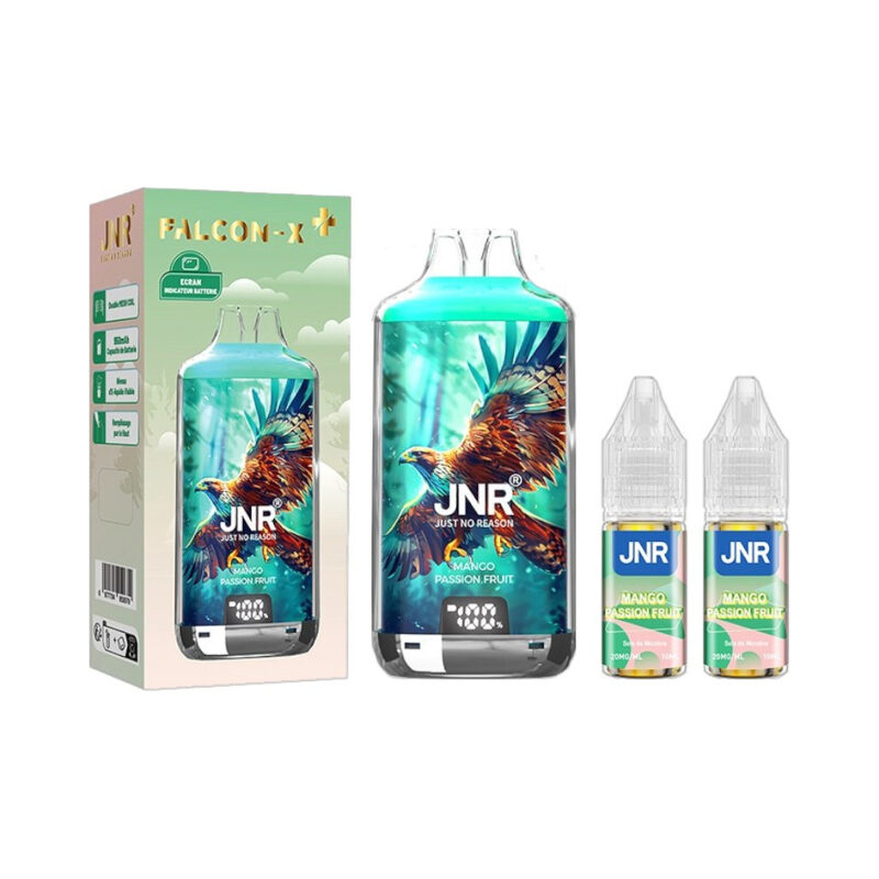 Kit Falcon X 28000 Mango Passion Fruit – Maximales Aroma, maximale Ausdauer Erleben Sie intensiven Geschmack und langanhaltenden Dampfgenuss mit dem Falcon X 28000 Mango Passion Fruit Kit. Ausgestattet mit einem leistungsstarken 950-mAh-Akku und 20 mg Nikotinsalz, bietet dieses Gerät bis zu 28000 Züge – ideal für anspruchsvolle Dampfer.
