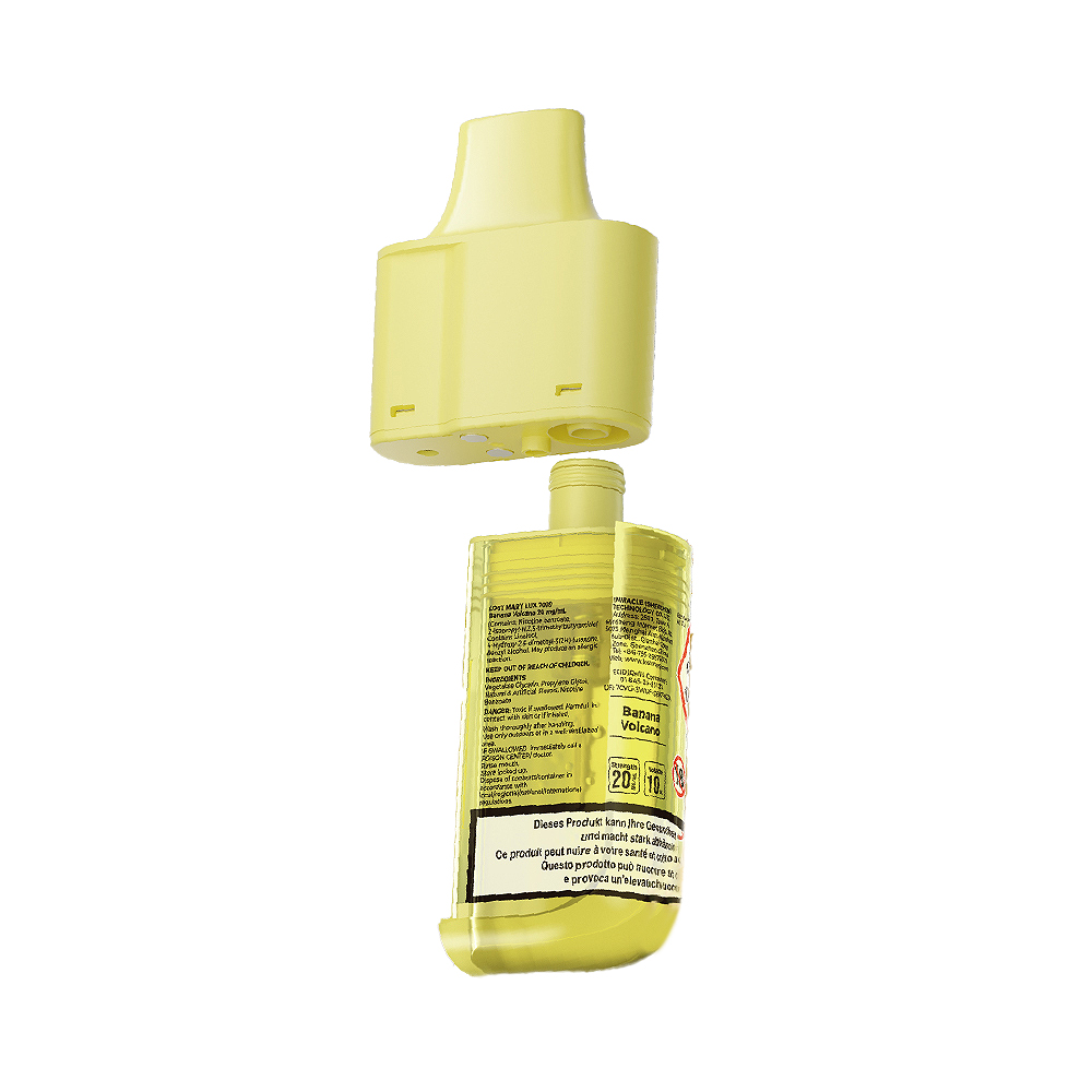 LOST MARY Lux7000 – Banana Volcano 20mg Refill Pod sind mit einem integrierten Verdampferkopf ausgestattet und lassen sich bei Bedarf jederzeit ersetzen, während du das gleiche Akkugerät weiterverwenden kannst. So sparst du langfristig Geld und schonst gleichzeitig die Umwelt, weil nicht jedes Mal ein komplettes Gerät ersetzt werden muss. Die zweiteiligen Lux-Pods bestehen aus einem Mundstück mit 2ml Liquid sowie einem 10ml Nachfüllbehälter und lassen sich einfach auf das Akkuteil stecken – schnell, sauber und ohne Aufwand.