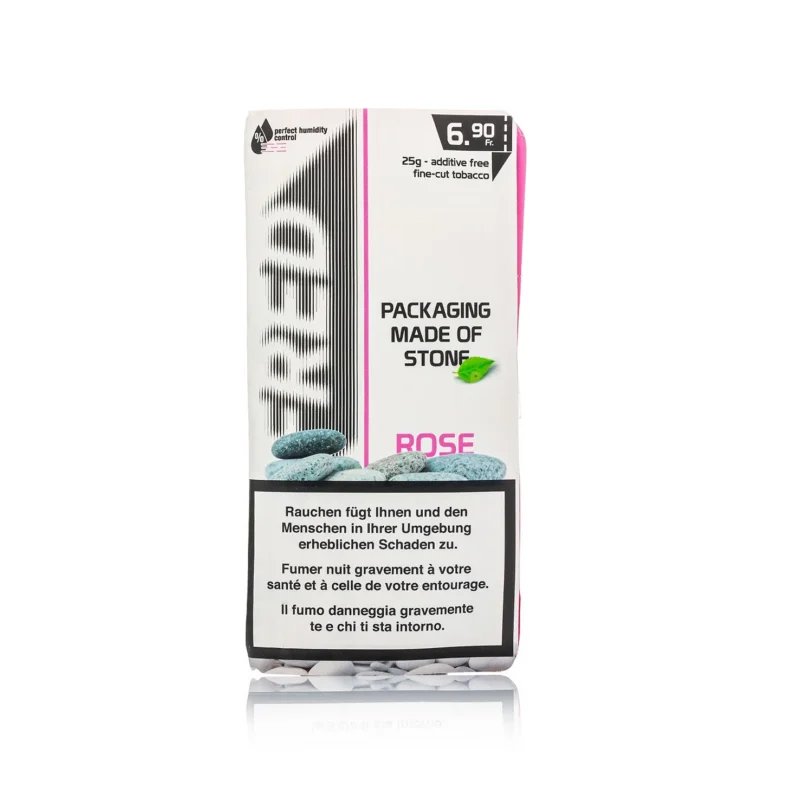 FRED Rose 25g wird aus natürlichen Tabakblättern hergestellt und bewusst ohne chemische Zusätze produziert. Dadurch entsteht ein besonders milder, naturbelassener Tabak mit hochwertigem Aroma, der sich ideal zum Drehen und Stopfen eigener Zigaretten eignet. Der praktische ZIP-Verschluss hält den Inhalt länger frisch und ermöglicht es, den Beutel jederzeit schnell und unkompliziert wieder zu schliessen. Ein Beutel FRED Rose enthält 25 g Drehtabak.