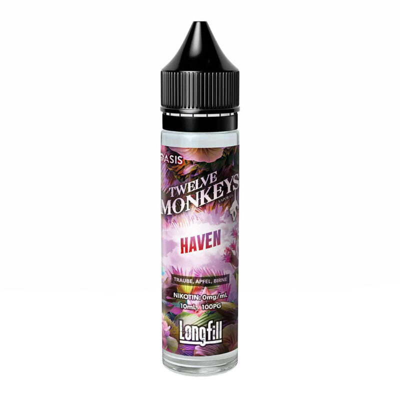 DETAILS Twelve Monkeys – Haven 10ml gehört zu der neuen Bold Fruit Taste Collection. Twelve Monkeys – Haven ist eine Mischung aus Traube, Apfel und Birne, welche alle Fruchtfans zur Ekstase bringt. Der Traubensaft ist perfekt ausgeglichen mit dem Geschmack der süssen Äpfel und frischen Birnen. Dieses Produkt enthält kein Nikotin und kann optional mit einem Nikotinshot angereichert werden.